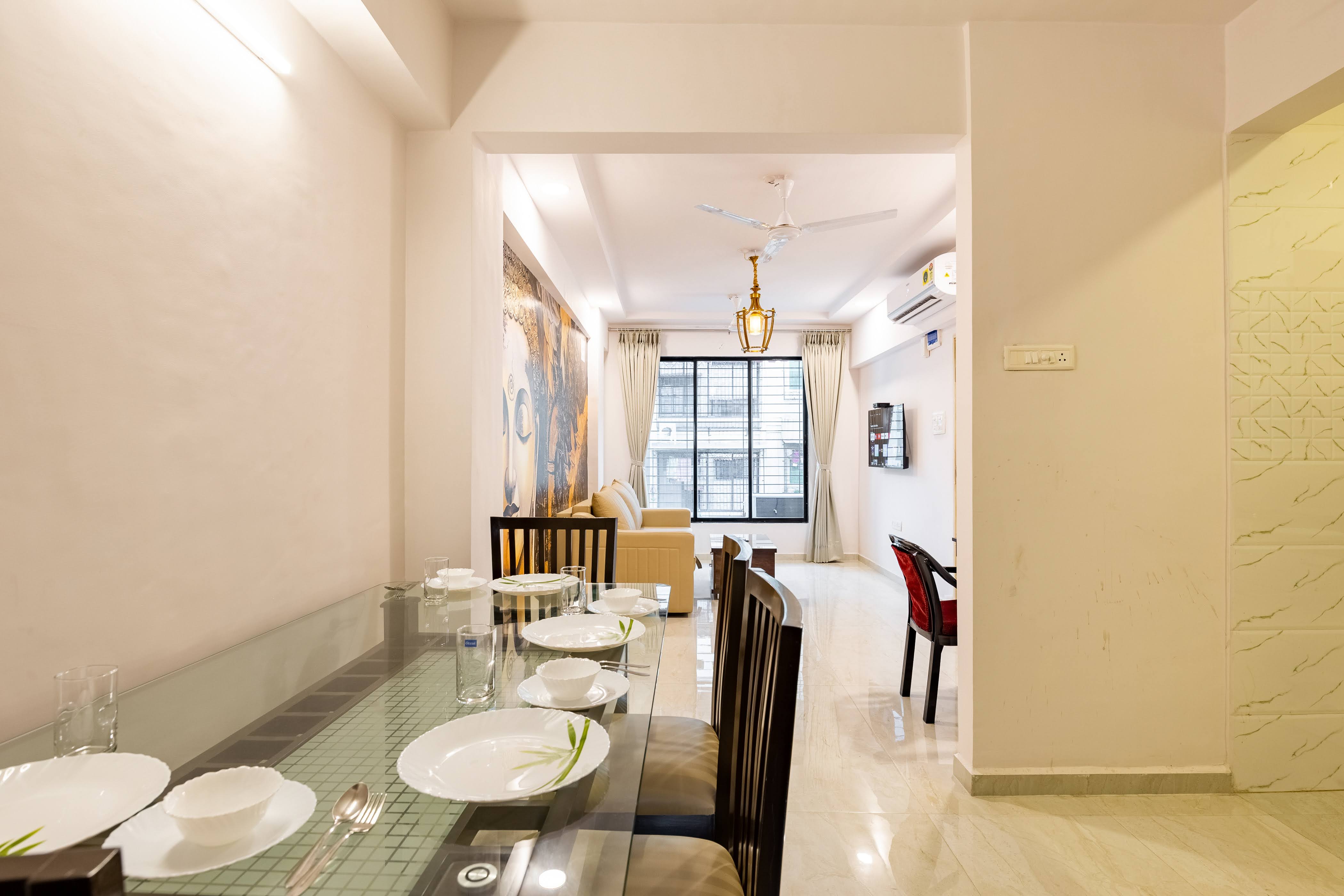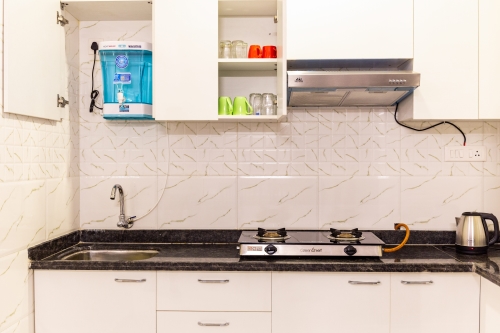 Our apartments are elegantly designed and fully furnished and have all the necessary equipments like Washing machine, Microwave Oven, Refrigerator, Flat Android TV, Water purifier, Cooking range, Gas , Crockery, Cutlery, Kitchen Utensils and Glassware and Wi-Fi!